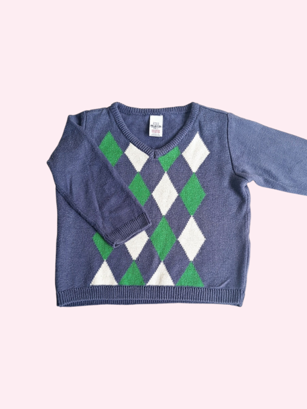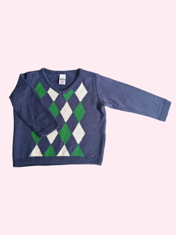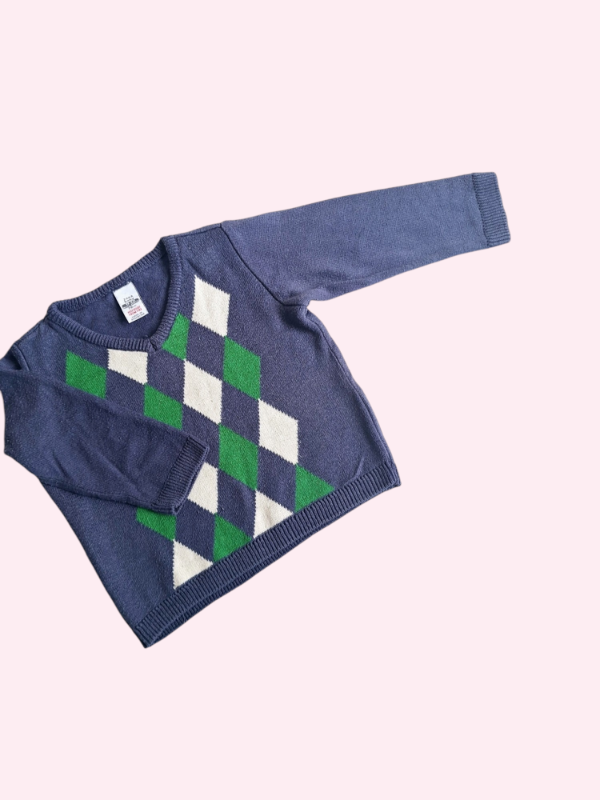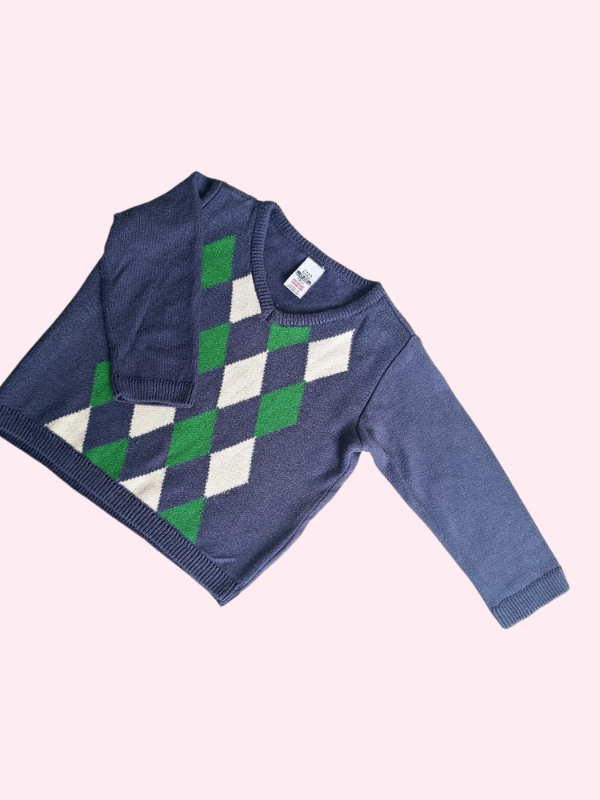 Sweater azul de hilo con rombos cremas y verdes Zara 9/12 meses