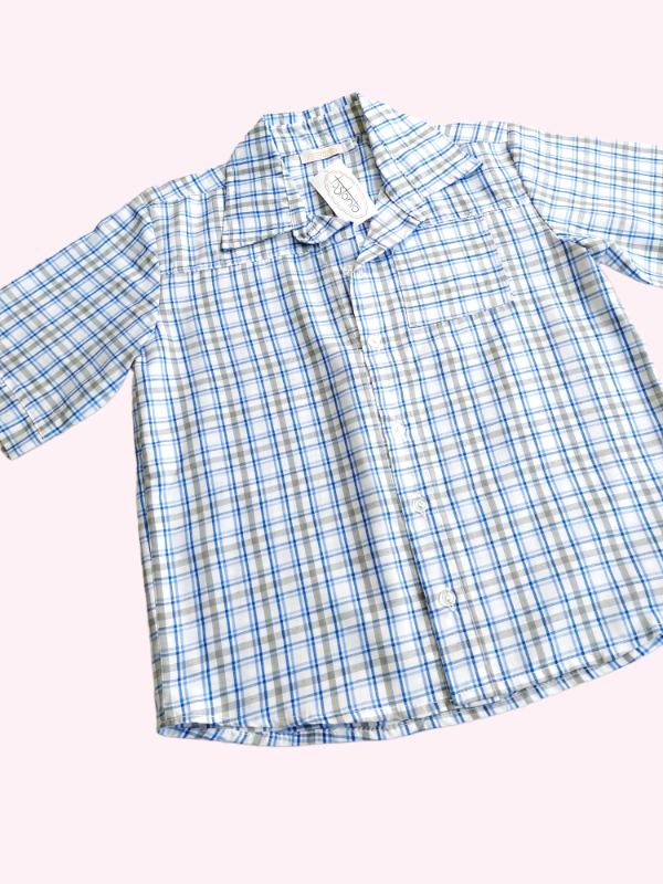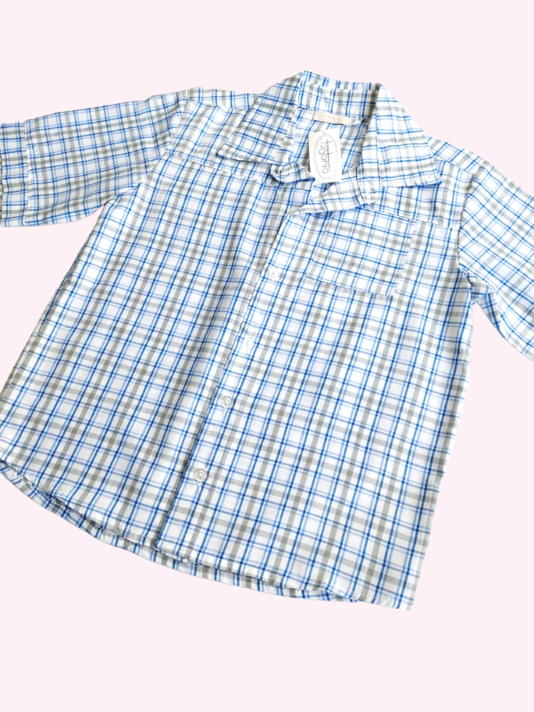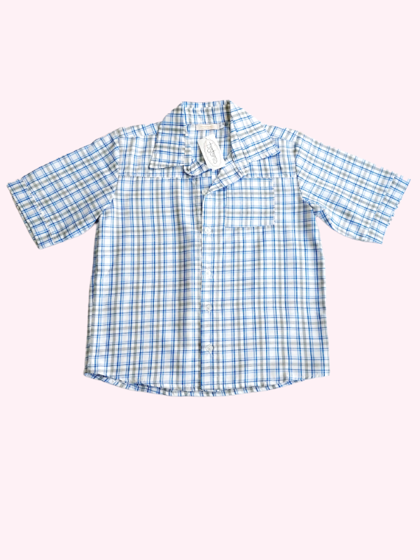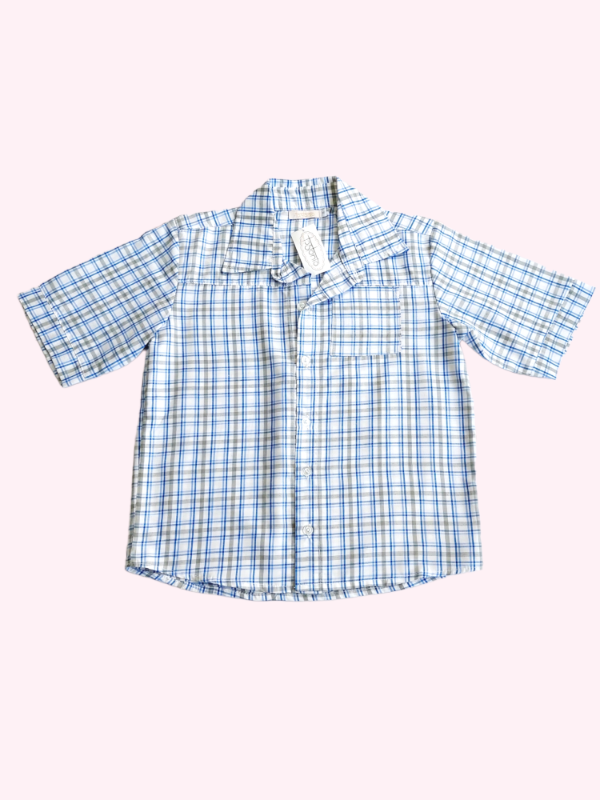 Camisa manga corta cuadrille azul blanco y gris Tostonio 10/12 años NUEVA