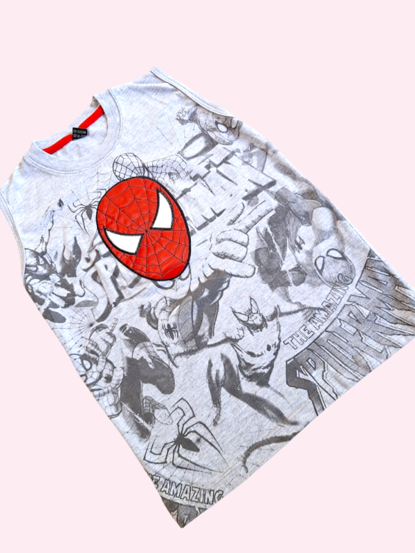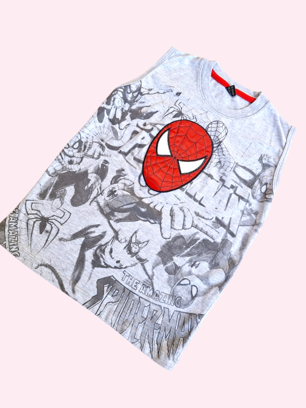 Musculosa gris con cara Spiderman de cuerina 10 años