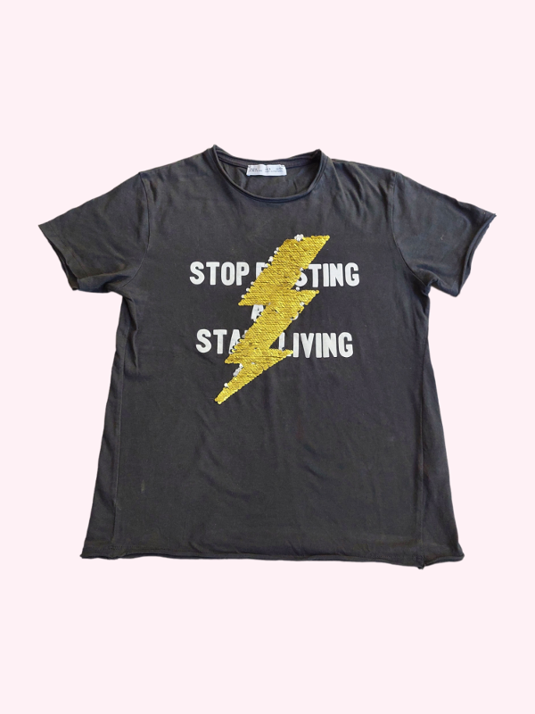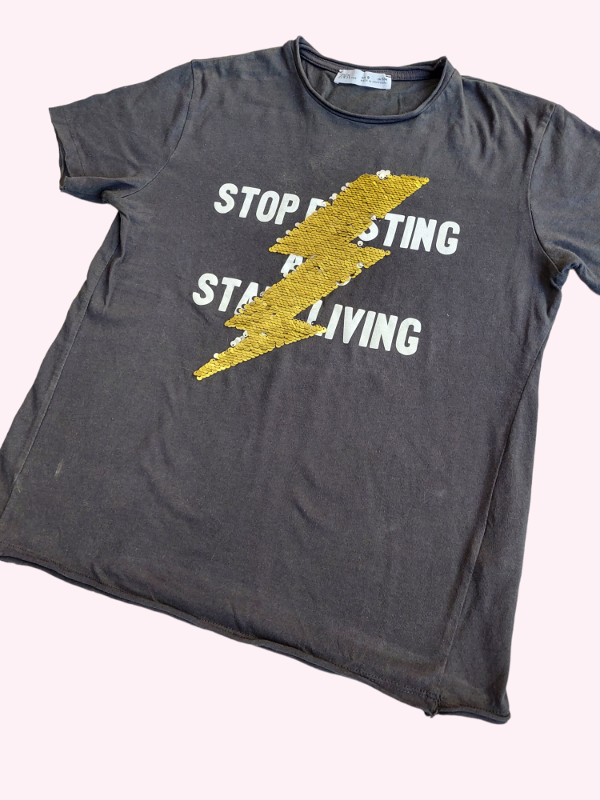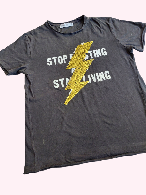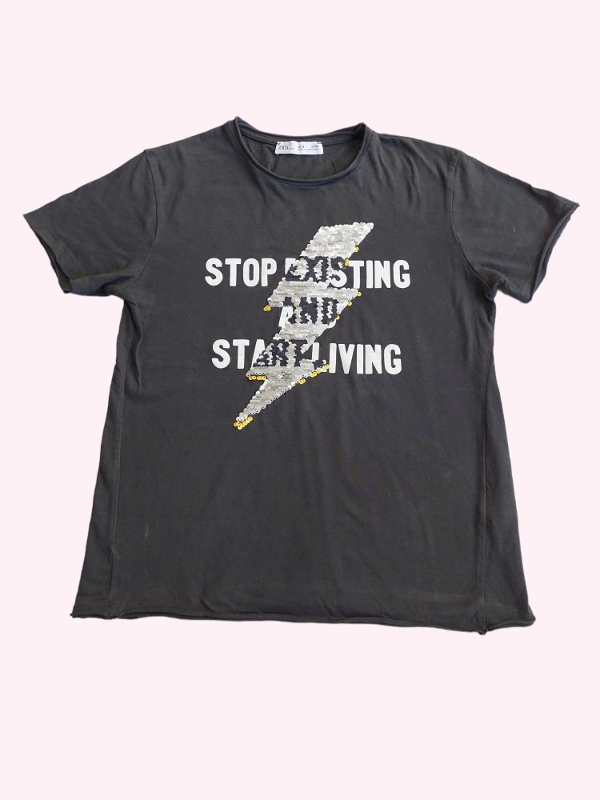 Remera manga corta gris y rayo lentejuelas Zara 9 años